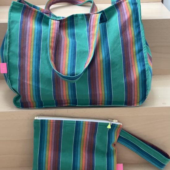 Collection « Les Cyclades » Grand sac cabas et sa pochette assortie (vert 💚)