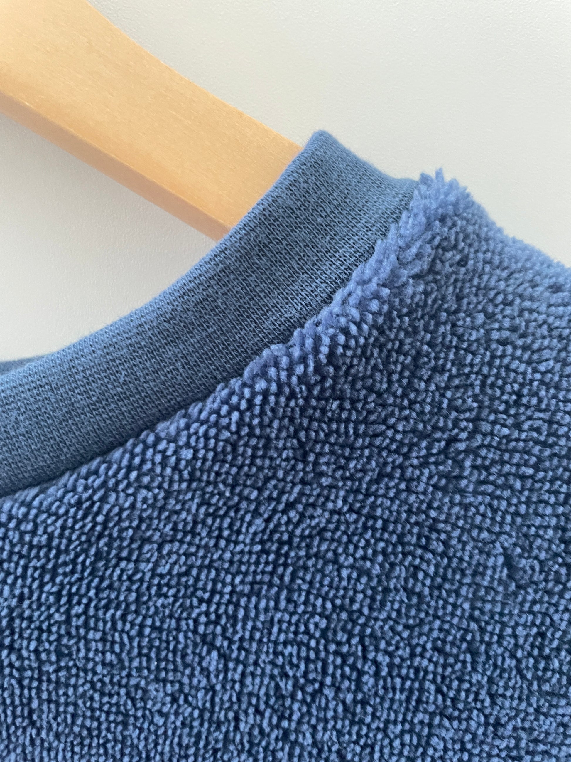 Le sweat en éponge bambou de couleur bleu denim avec son bord côte assorti