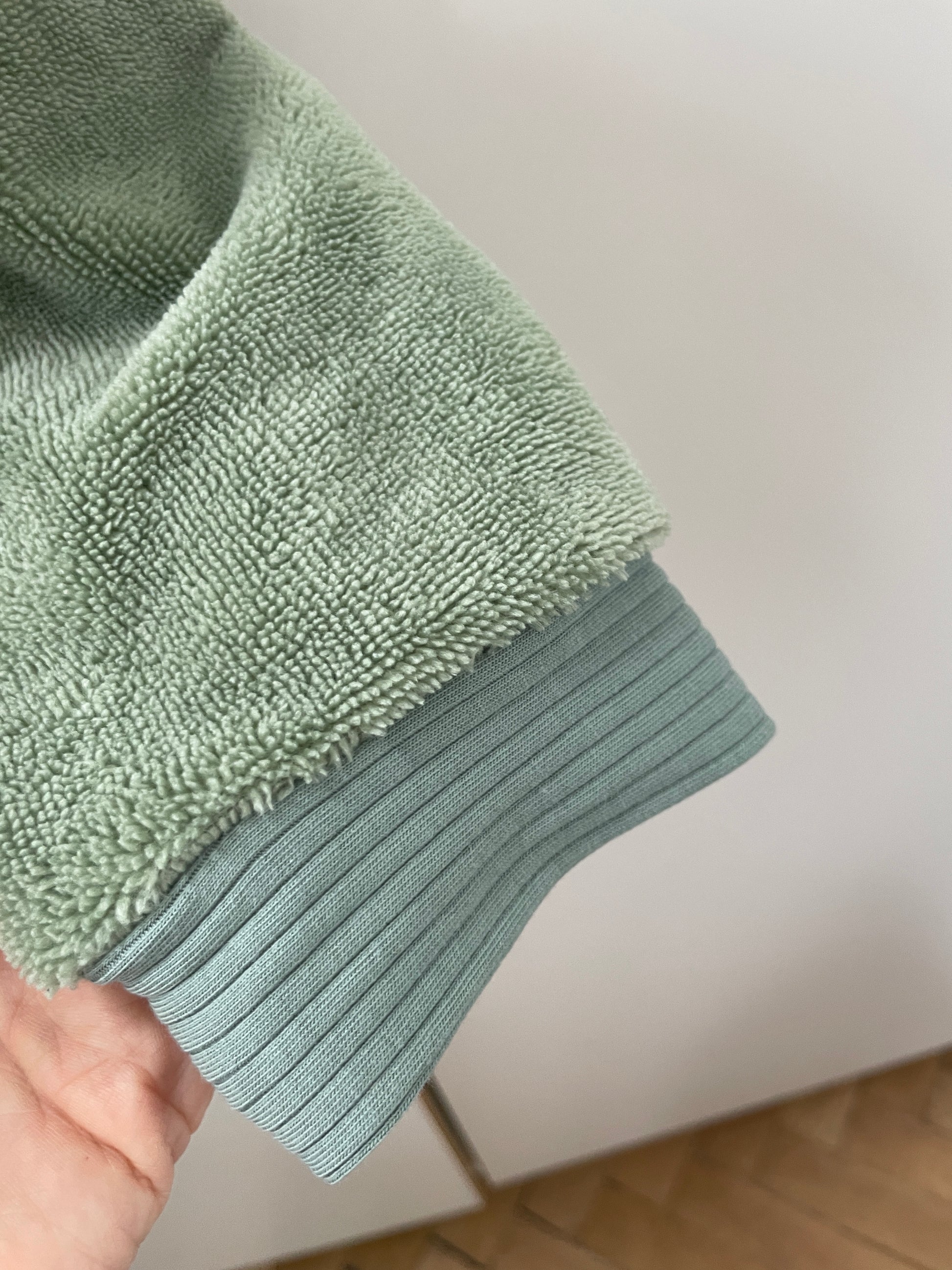 Le sweat en éponge bambou de couleur Kaki romarin avec son bord côte assorti